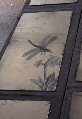 - Taking Flight 2012.Silvered glass, shellac, acrylic paint with lead frame. 820 x 590mm £800